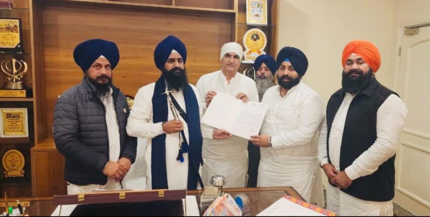 Harjot Singh Bains & Deepak Bali extend invitation to Jathedar Giani Kuldeep Singh Gargajj for Sri Guru Tegh Bahadur Ji’s 350th Martyrdom Anniversary Chandigarh/ Sri Anandpur Sahib, November 10:– In a significant step towards ensuring the solemn and grand commemorations of the 350th Martyrdom Anniversary of Sri Guru Tegh Bahadur Sahib Ji, Punjab Education Minister Harjot Singh Bains, along with Advisor to Tourism & Cultural Affairs Department Deepak Bali, on Monday, called on Giani Kuldeep Singh Garjgajj, Officiating Jathedar of Sri Akal Takht Sahib and Jathedar of Takht Sri Kesgarh Sahib. During the meeting at the sacred precincts of Takht Sri Kesgarh Sahib, Harjot Singh Bains and Deepak Bali extended invitation to Jathedar Giani Kuldeep Singh Gargajj to join the Ninth Guru Sahib Ji’s 350th Martyrdom Anniversary commemorations. The Education Minister also requested his gracious presence and participation in the ‘Sarb Dharm Sammelan’ scheduled for November 23 at Sri Anandpur Sahib. The Sarb Dharm Sammelan, echoing Sri Guru Tegh Bahadur Ji’s message of peace, sacrifice and protection of all faiths, is set to be a pivotal event, promoting unity and harmony among all, he added. Apprising Jathedar Giani Kuldeep Singh Gargajj about the state government’s preparations for the historic events, S. Bains highlighted the extensive arrangements and ongoing development works being undertaken by Chief Minister Bhagwant Singh Mann led Punjab Government in Sri Anandpur Sahib and its surrounding areas. The Education Minister stated, “Our government is dedicated to pay befitting homage to the supreme sacrifice of Sri Guru Tegh Bahadur Ji. Aligning with spiritual and religious significance of the historic occasion, we are working tirelessly to ensure the infrastructure, amenities and fitting environment for the countless devotees who will gather here from across the globe.”